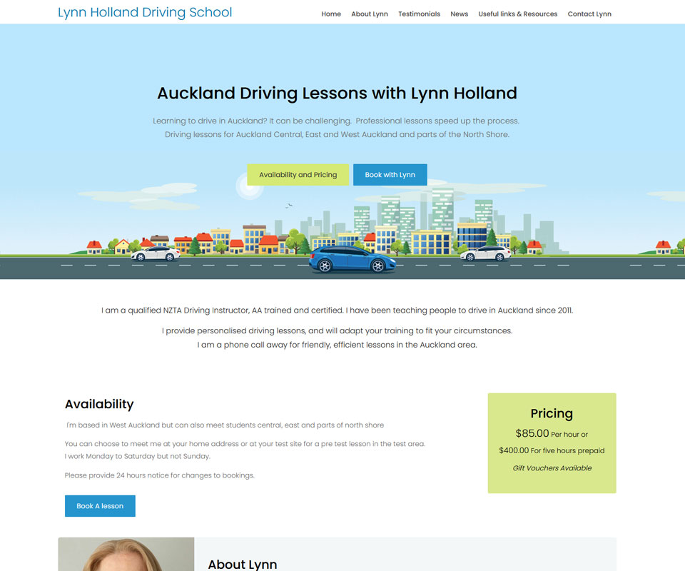 A marketing website for Lynn Hollands Auckland Driving School.