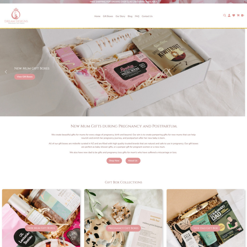 E-commerce gift box site, allowing stock keeping of separate components that appear in several gift boxes. Website Design: Wild Paradise Design www.wildparadise.nz