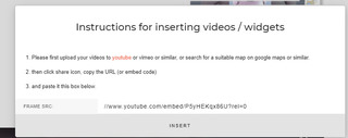 4. This opens a popup with an area at the bottom for you to add the direct video link from your 3rd party host. Click the Insert button at the bottom and your video will be visible on your page, as ours is below this.