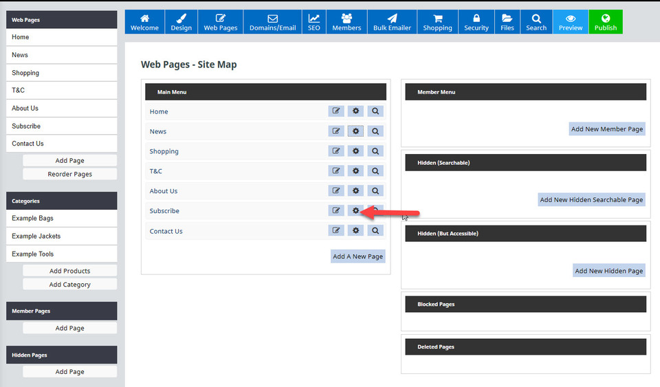 Your new website will come pre-populated with pages which will vary according to the type of template you chose. It is easy to add or/and remove or rename these pages within your website.