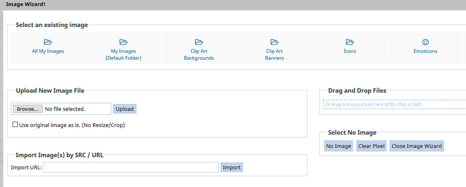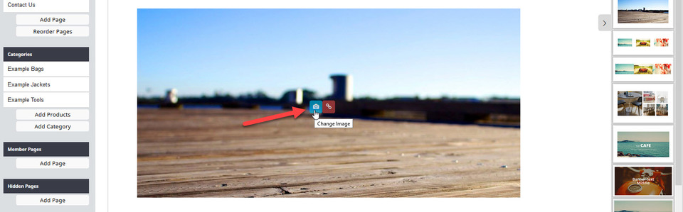 You can also use the drag and drop widget found on the right hand side of the screen to add an image or image and text block to a page. Choose the best image type from the options available and drag it onto the page where you would like it. Hover over the image and click on the Change Image icon.