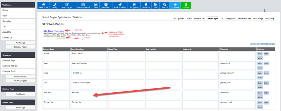 This will then open a page from where you can edit your SEO meta tags, including your page title (page heading).