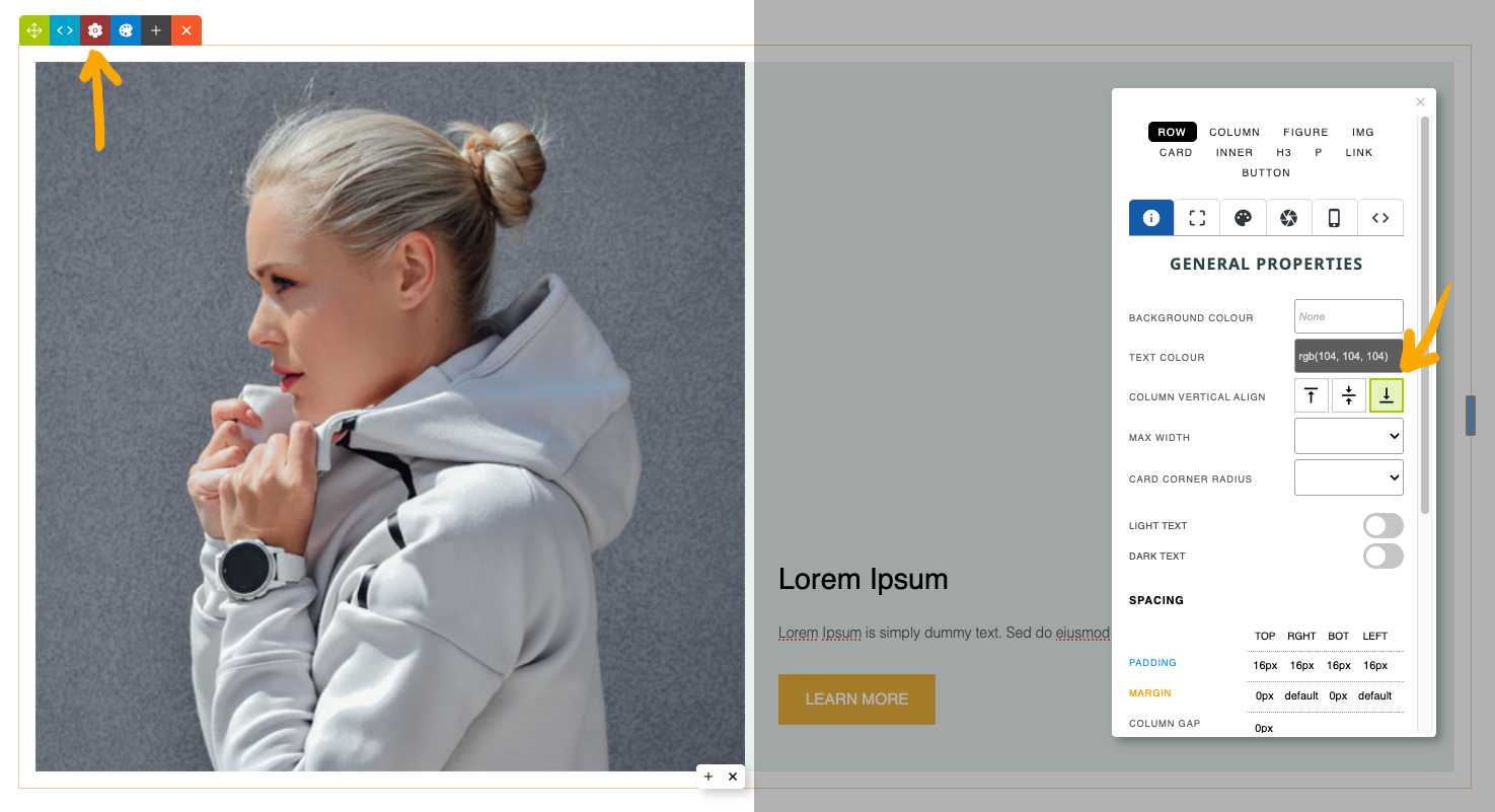 • From the options that appear - choose an option from the COLUMN VERTICAL ALIGN buttons.