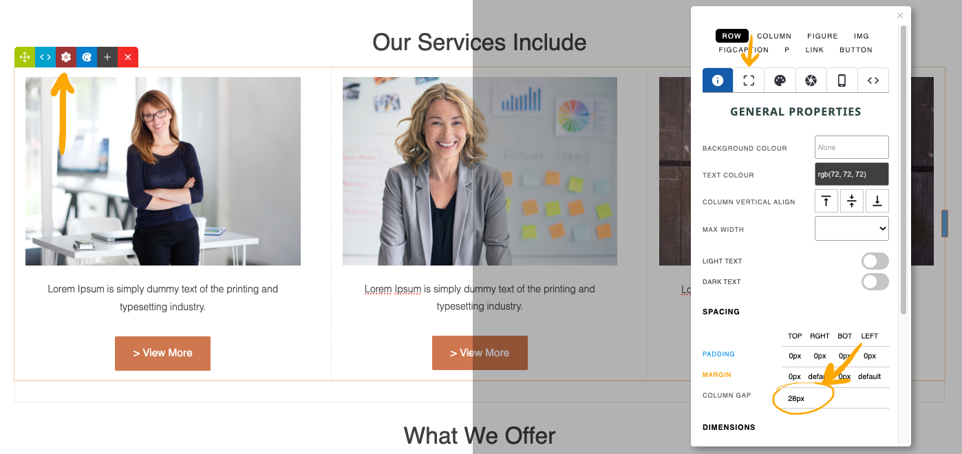 • Click the RED COG icon found in the Row Tools top-left of the snippet