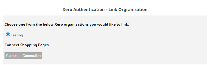 5) Choose which shopping page you would like to allow access to and click Complete Connection.