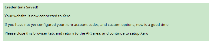 You will then see this green screen if completed successfully. Close the pop up browser and return to the CMS to continue.