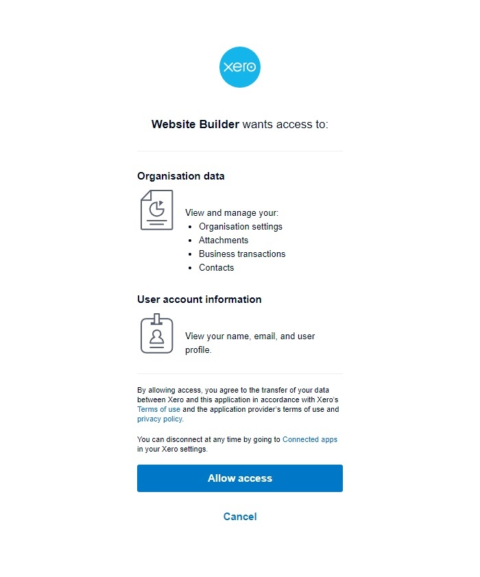 To connect your website with Xero: