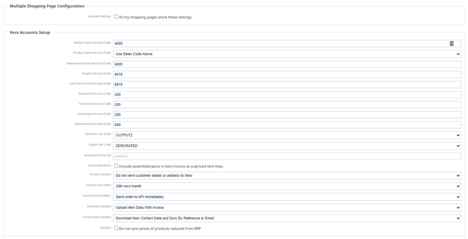 You can change sales codes etc. to match your Xero ones by clicking on "Xero Config"