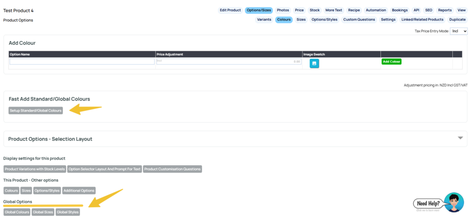 Once you have added your Global options e.g. colours, these can be applied to any product via the Manage Colours area.