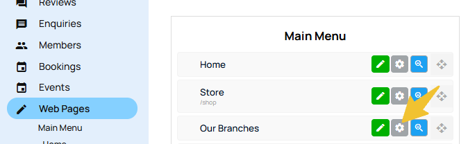 Hover over the page and click the COG ICON to go to the page options for the page.