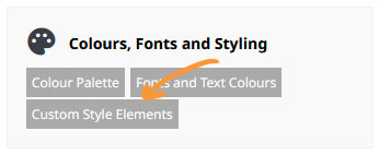 DESIGN > Colours, Fonts and Styling > Custom Style Elements section.