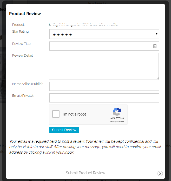 This popup rating/review form allows users to post their review/rating. Either click the rating stars or the the REVIEW button in the reviews tab to see this form.