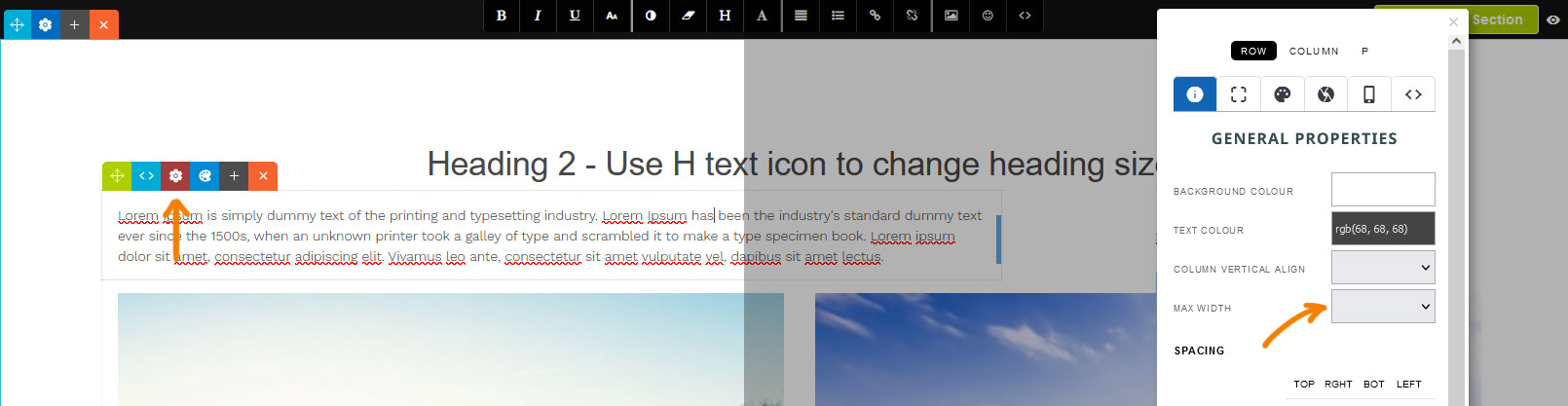 You can set also a specific max-width by clicking the RED COG ICON which will launch the style modal. From there select a value from the MAX WIDTH dropdown on the properties tab.
