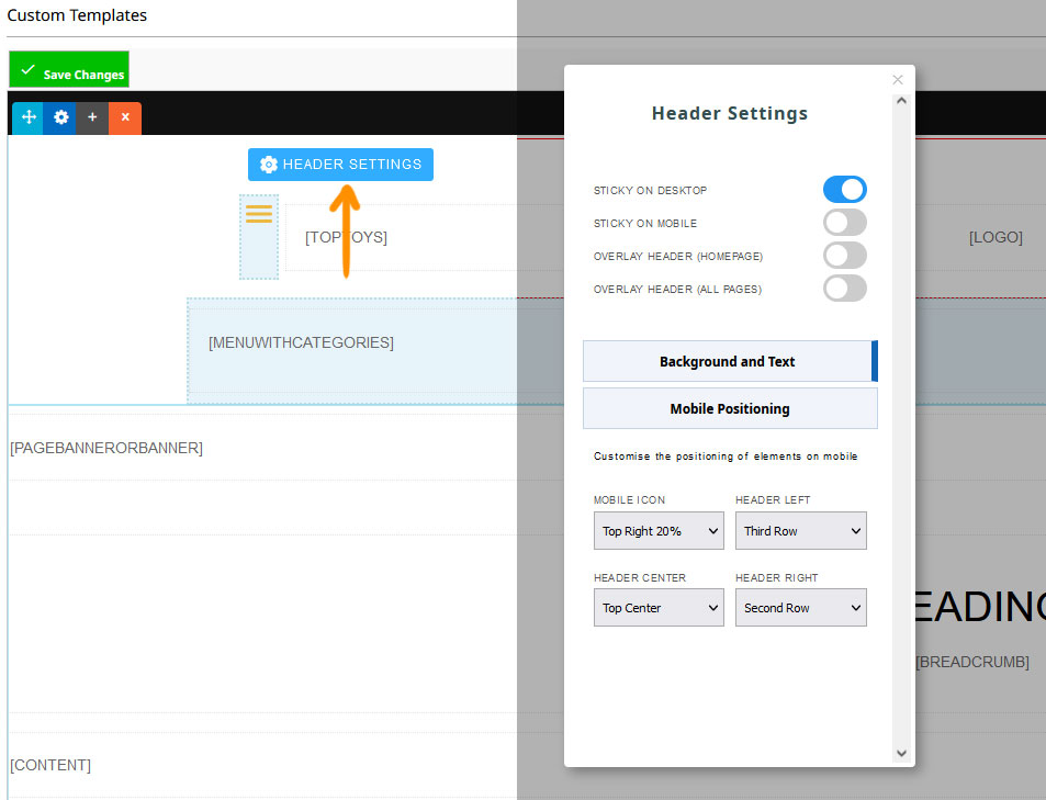 Top Settings (e.g. Top Left, Top Right 20%): Set the positioning on the top row on mobile.